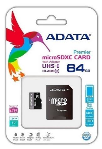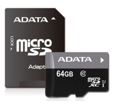 Memoria Micro SD Adata con Adaptador SD Class 10UHS 64GB.